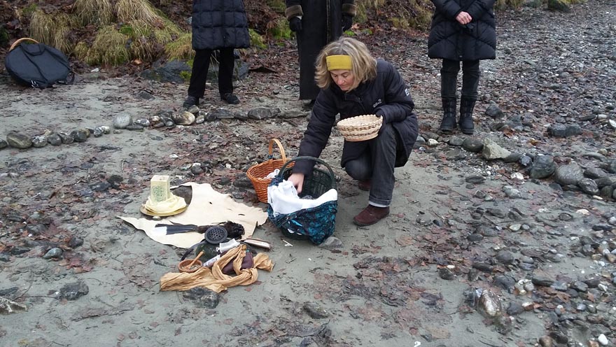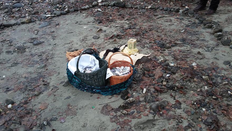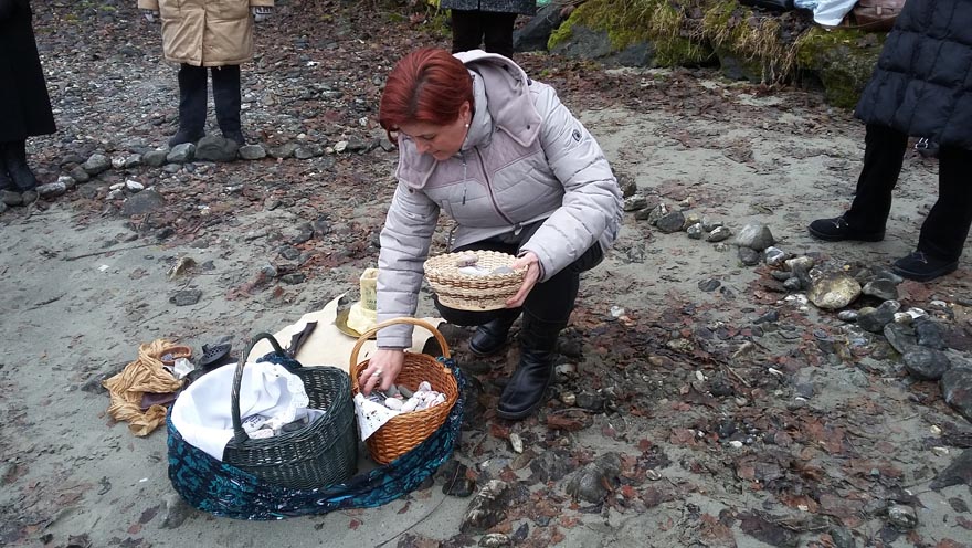 Die Verabschiedung beginnt mit einem Räucherritual. 202 Namen wurden vorgelesen und die Steine dem Wasser übergeben. Lichter werden als Begleiter mit auf den Weg geschickt. Allen werden Gedanken mit auf den Weg gegeben: