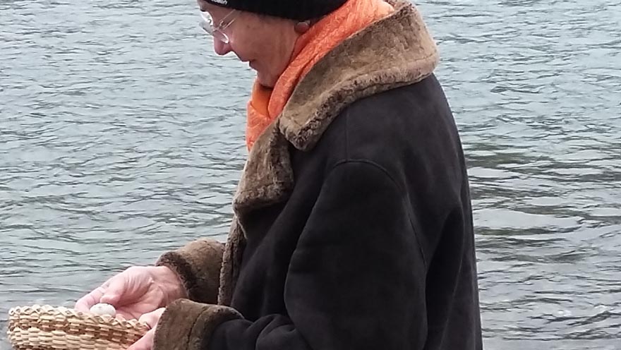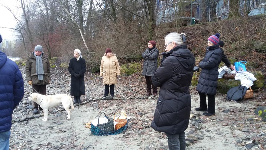 Am Anfang des Jahres treffen sich haupt- und ehrenamtliche MitarbeiterInnen des mobilen Palliativteams Innsbruck/Land zum großen Jahresverabschiedungsritual am Inn. Die Steine mit den Namen all jener Menschen, die im vergangenen Jahr begleitet wurden und verstorben sind, werden dem Fluss des Lebens übergeben.