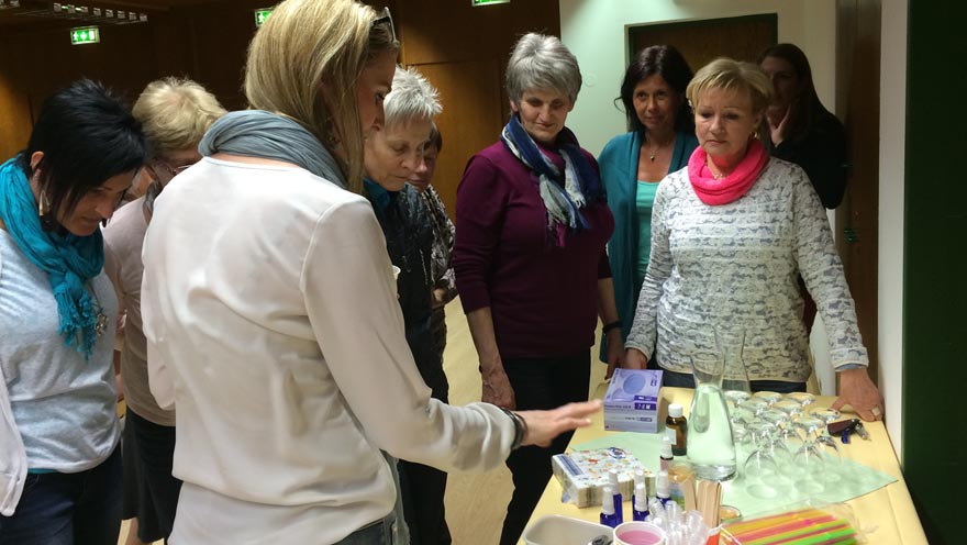 Die Pflegedienstleitung Mag. Elisabeth Draxl und DGKS. Aglae Hartig-Wille führten uns auf vielen Ebenen – theoretisch – praktisch – emotional auf dieses Thema ein. DANKE.