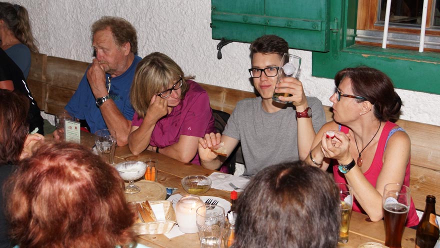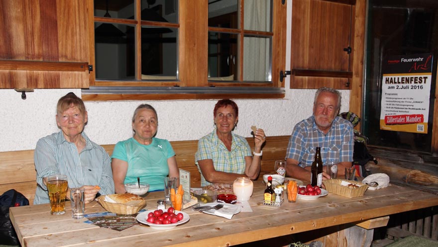 Am 24. Juni 2016 wanderten an die 50 FörderInnen für die Hospiz-Gemeinschaft von der Hungerburg auf die Arzler Alm und wieder zurück. Elisabeth Zanon (Vorsitzende Tiroler Hospiz-Gemeinschaft) bedankte sich bei allen, die sich zur späten Stunde fürs Hospiz auf den Weg machten. Nach den erfolgreich absolvierten 199 Höhenmetern gab es eine Jause auf der Arzler Alm.