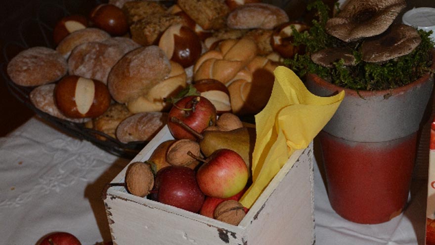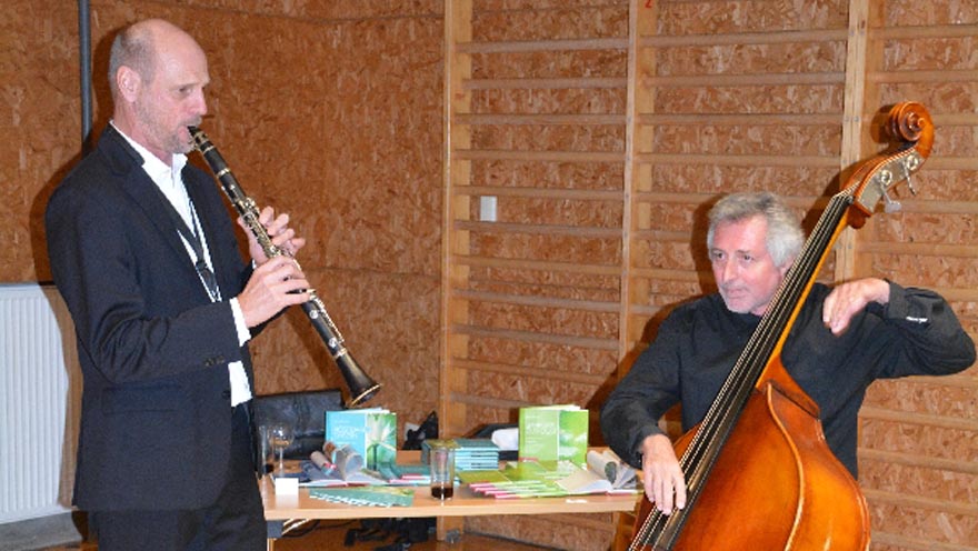 Die KünstlerInnen Petra Hillebrand, Gösta Müller, Florian Scharmer und Markus Geyr (v.l.n.r.) sorgten für einen gelungenen Welthospiztag am 10. Oktober 2015 im Mehrzwecksaal der Volksschule Inzing.